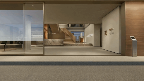 NARUSI展厅设计,从整体视觉的流畅线条和细节的高级质感出发,2000多平方米的高端门窗体验馆,系统门窗产品以绿色环保、隔音、隔热、防水、保温、安全等为亮点,融合了美学、声学、力学等学科原理作艺术设计,具有高奢,先进,具有前端性的外观特征,诠释了建筑美学与意式奢居结合的立面美学艺术。