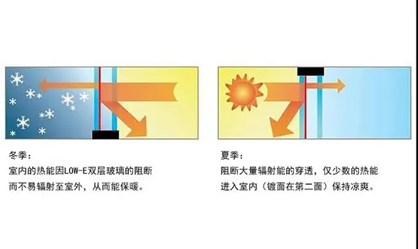为进一步提升整窗的保温性,可选中空玻璃、三玻两腔、Low-e 中空玻璃、Low-e 三玻两腔等玻璃甚至四玻夹胶low-e配置。对于华北、东北等冬天严寒地区,三玻两腔搭配 Low-e 低辐射玻璃更是可以增强整窗的保温节能效果。