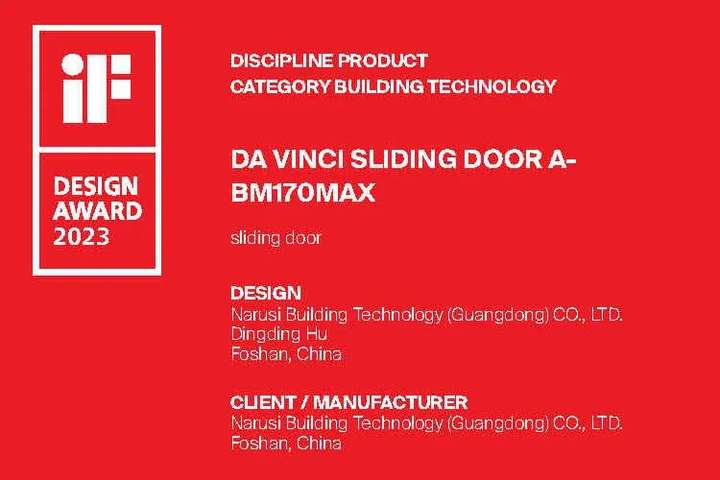 获得iF标志的达芬奇推拉门A-BM170MAX,不仅是杰出设计的代表,更意味着这款推拉门产品在全球范围内得到国际高度认可与肯定。